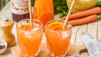 Mocktail orange sanguine, jus de carotte, poivre noir & gingembre