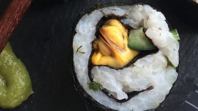 Makis de moules de bouchot de la Baie du Mont-Saint-Michel et concombre