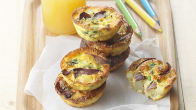 Frittatas au magret fumé au bois de hêtre Montfort, pommes de terre et petits pois