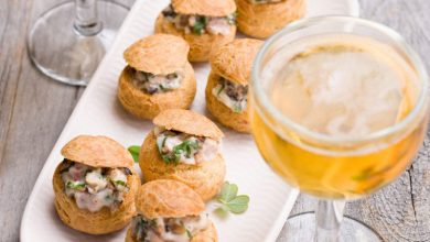 Profiteroles au jambon et champignons déglacés au cidre brut