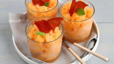Granité de melon et chips de jambon Serrano Aoste