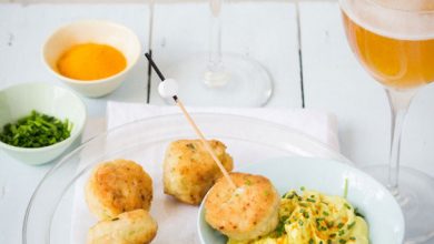 Boulettes de poulet, courgette, ciboulette et féta et sauce crémeuse au cidre et curcuma