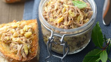 Rillettes de confit de canard aux haricots beurre persillés