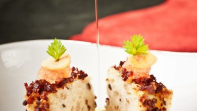 Bouchées de Dinde et Bacon croustillant sur lit de Quetsches de Lorraine