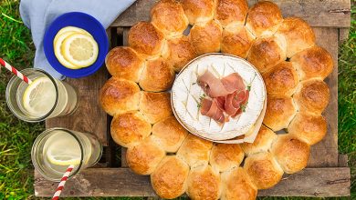 Brioche française fourrée autour d’un fromage rôti et jambon cru Aoste