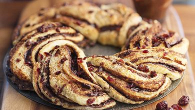 Brioche tressée chocolat et baies de cranberry