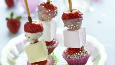 Guimauves, fondue au chocolat blanc et fruits d’automne