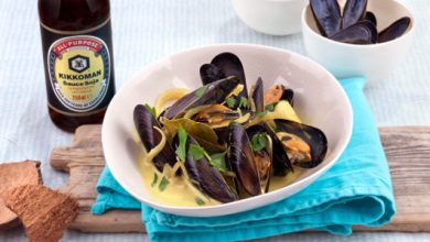 Poêlée de coques, Saint Agur®, poireaux au raifort