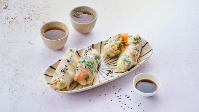 Rouleaux de printemps au Saumon de Norvège Fumé -25% de sel, sauce au fruit de la passion