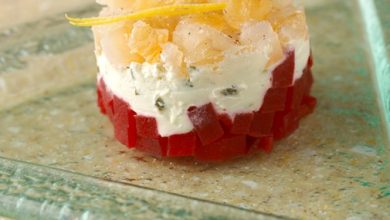 Galettes de Sarrasin au Saumon, Aneth, Ricotta et Gelée de Groseilles, Façon Maki