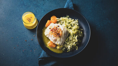 Skrei de Norvège à la mandarine et embeurrée de chou vert