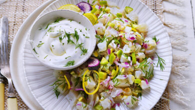 Filet de daurade poché accompagné d’une sauce aïoli pommes de terre primeurs