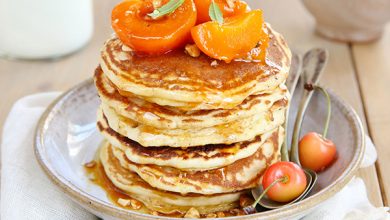 Pancakes au lait de chèvre Lactel® et abricots rôtis au miel
