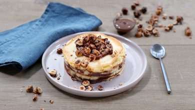 Mille-feuilles de crêpes au Nutella®, crème à la vanille et noisettes caramélisées