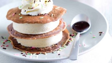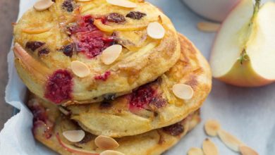 Pyramide de pancakes à la compote de pommes et sirop d’érable