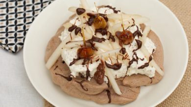 Pavlova chocolat, poire & noisette à la Crème de Bresse AOP