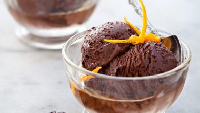Glace au chocolat, crème de whisky et orange