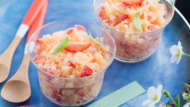 Tartare de fraise à la menthe et granité de pastèque
