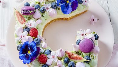 Alphabet cake aux fruits rouges et fleurs comestibles