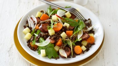 Salade tiède Pur Brebis Pyrénées, lentilles et Montbéliard