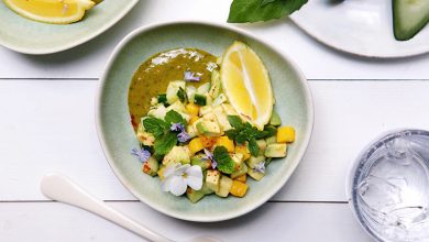 Tartare de concombres de France, avocat et mangue