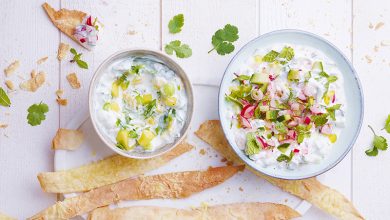 Assortiment de raïta et crackers maison
