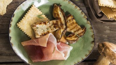 Crackers à la polenta, cèpes grillés et jambon de Parme