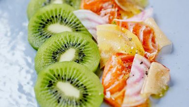 Saumon mariné aux agrumes et kiwi de l’Adour IGP façon pickles