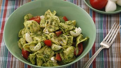 Salade de Tortellini Pesto, Basilic & Pignons avec tomates cerises et mozzarella