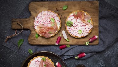 Duo de thon et fraises Gariguette en carpaccio, wakamé et houmous de pois chiche