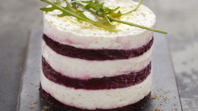 Marbré de betterave au cumin et palet de chèvre frais