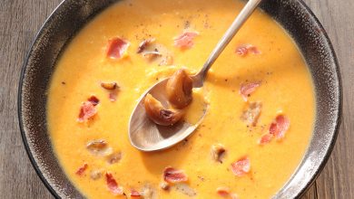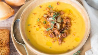 Velouté Butternut et châtaignes au crumble de pain d’épices