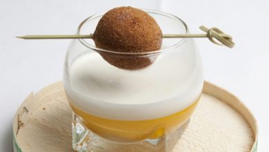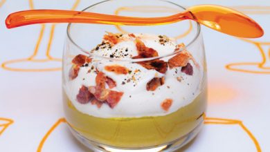 Velouté de potimarron au curry, espuma et cromesqui au Mont d’Or