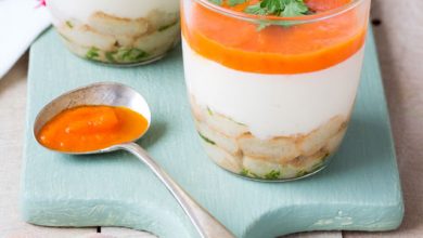 Verrine de quinoa et lentilles aux carottes, abricots secs et crème coco
