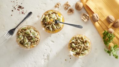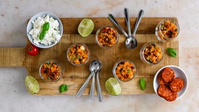Verrines apéritives aux Lentilles corail Vivien Paille®, chorizo & feta