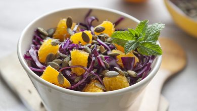 Salade de chou rouge à l’orange et aux graines