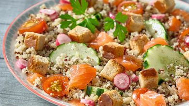 Salade pique-nique quinoa, crudités, thon et Croûtons Chèvre Tipiak