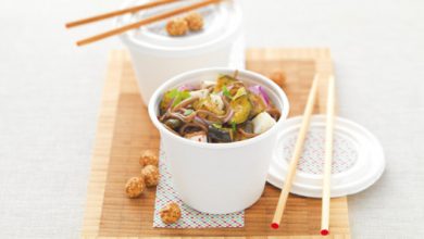 Nouilles Soba aux courgettes grillées et chèvre frais