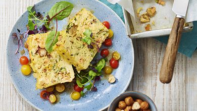 Cake de Spaghetti courts au saumon, courgettes et noisettes