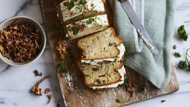 Cake aux champignons, tofu fumé et sauce soja