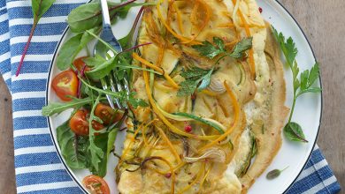 Crêpes à la farine de pois chiche, farcies de taboulé et dés d’Emmentaler® AOP Suisse