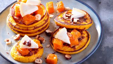 Petits pancakes à la courge butternut rôtie et Charolais AOP
