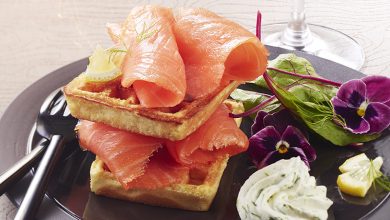 Mini-gaufres au saumon fumé et leur chantilly au citron vert