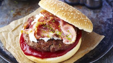 Burgers d’agneau bio au chèvre et au bacon