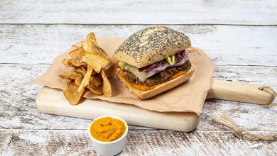 Vintage burger, chips de panais et ketchup de carottes