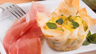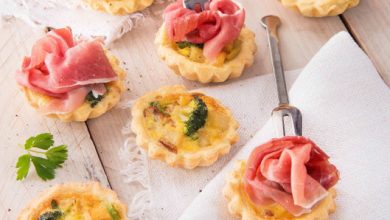 Mini-quiches aux pommes de terre, brocolis et Jambon de Parme