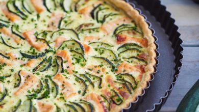 Petite tarte au fromage de chèvre, courgettes et saumon