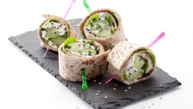 Wraps de Fromage Frais, Laitue, Concombre et Fines Herbes