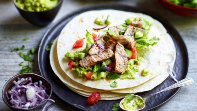 Tortilla Wrap au bifteck grillé, avocat et sauce aux haricots