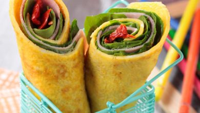 Les Wraps d’omelette au jambon et pousses d’épinards